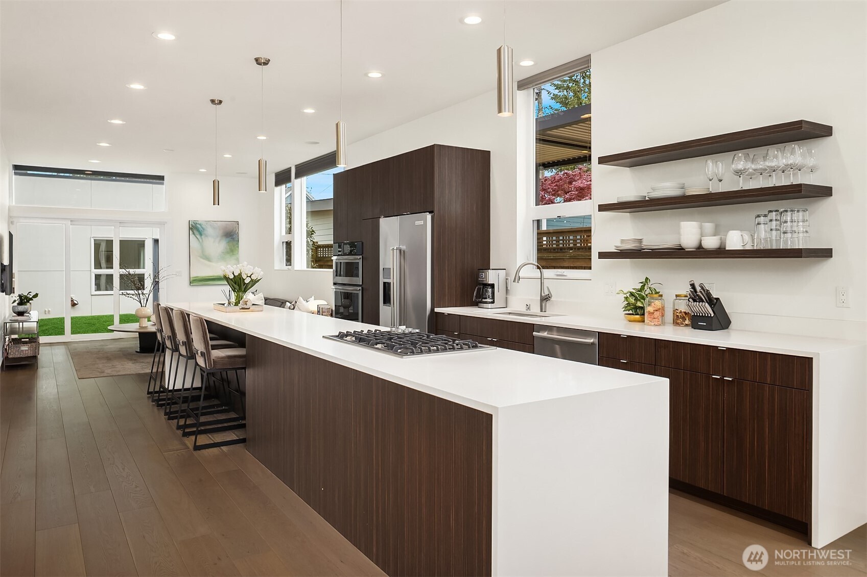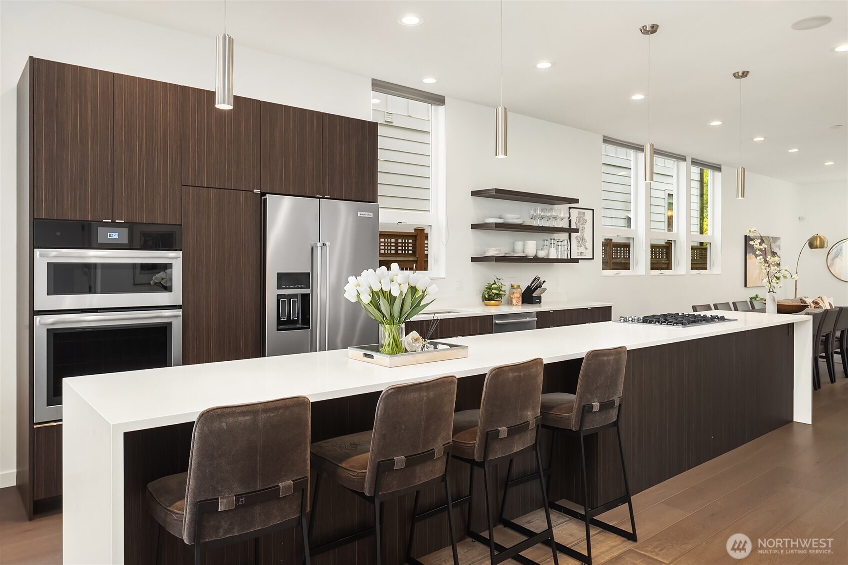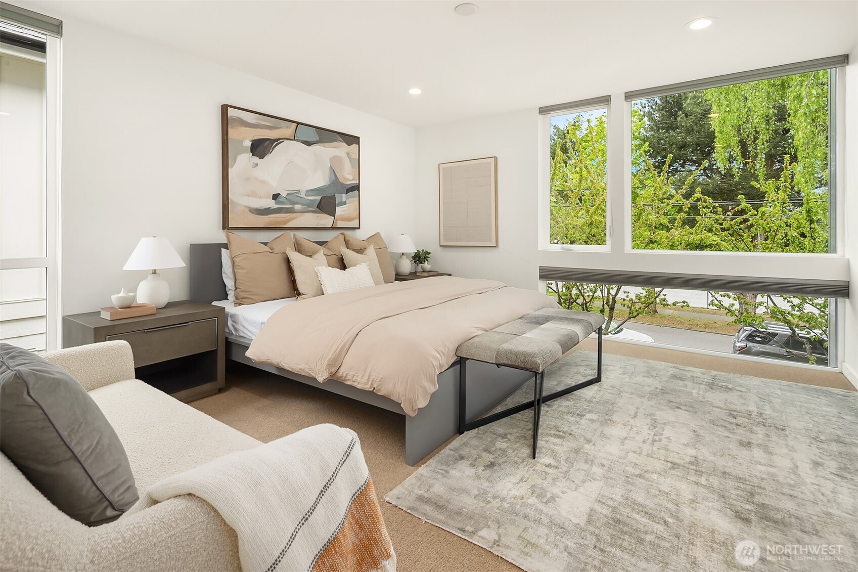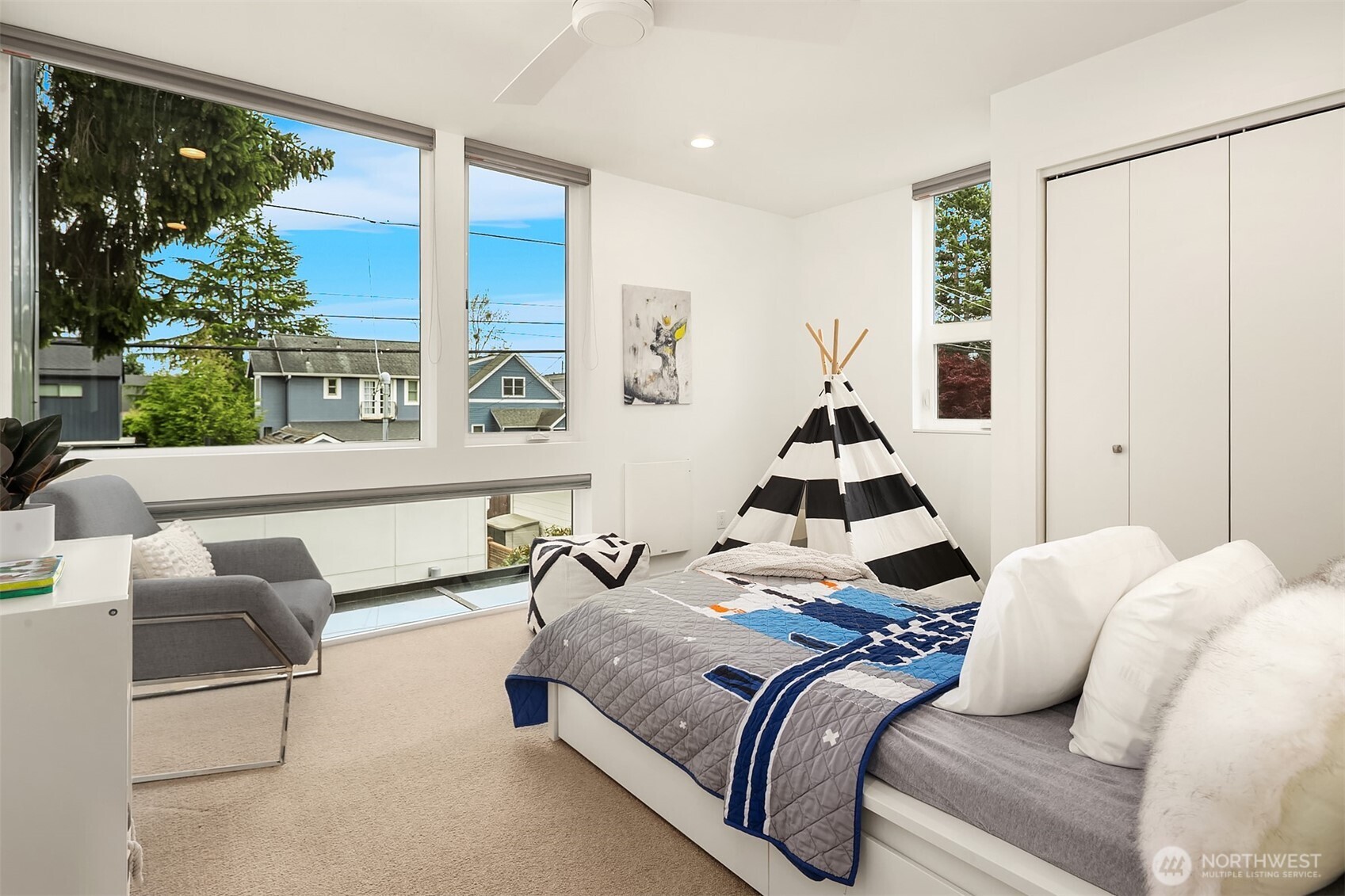 Custom built in 2014 with a focus on intentional design and modern livability, this residence offers a rare blend of quality, light, and flexibility in the heart of Queen Anne. From the moment you enter, oversized windows and thoughtful sightlines create an immediate sense of openness, filling the home with natural light throughout. The main level is designed for both effortless entertaining and everyday ease, anchored by a striking chef’s kitchen with an oversized island, Jenn-Air appliances, a wine fridge, and sleek quartz surfaces. The space flows seamlessly into the living and dining areas, creating a cohesive, inviting environment. Upstairs, three well-appointed bedrooms are complemented by an open bonus living area, ideal for media, work-from-home flexibility, or relaxation, along with a dedicated laundry room for added convenience. The primary suite is a true retreat, featuring floor-to-ceiling windows, a spa-inspired bath with a double vanity, and a generous walk-in closet. Set on a flat, fully fenced lot, the property also includes a one-car garage with a private en-suite bedroom, perfect for guests, a home office, or creative studio. Above it all, there’s a stunning ~1,000 SF rooftop deck with expansive space for entertaining, unwinding, and taking in the surrounding cityscape. Moments from Queen Anne’s top dining, parks, and amenities, with easy access to South Lake Union and downtown, this home delivers a seamless balance of design, location, and lifestyle.